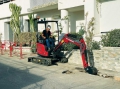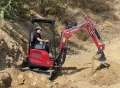 La mini-pelle ViO17 est une véritable machine sans déport arrière : ni le contrepoids, ni la partie avant ne dépassent de la largeur des chenilles.
